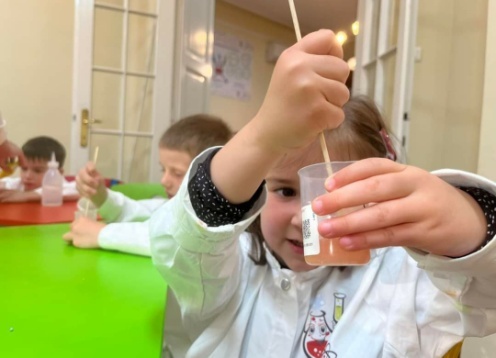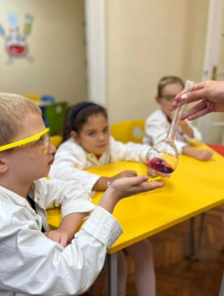 Wir geben den Kindern die Möglichkeit, selbst mit Laborgeräten zu arbeiten und verschiedene wissenschaftliche Experimente eigenständig durchzuführen. Auf diese Weise entwickeln die Kinder nicht nur eine Liebe zur Wissenschaft, sondern auch Selbstvertrauen. Wir vernachlässigen jedoch nicht die Theorie, denn obwohl die Praxis wichtig ist, müssen wir uns mit den wissenschaftlichen Begriffen vertraut machen. Unser Team entwirft spezielle Fragen und Beispiele, um den Kleinen zu helfen, komplexe wissenschaftliche Konzepte auf die einfachste Weise zu verstehen. Jedes Kind hat die Gelegenheit, seine Antwort auf gestellte Fragen zu präsentieren und seine Meinung zu äußern. Geleitet von der Essenz des wissenschaftlichen Begriffs, geben die Kleinen ihre Beobachtungen ab und ziehen Schlussfolgerungen.